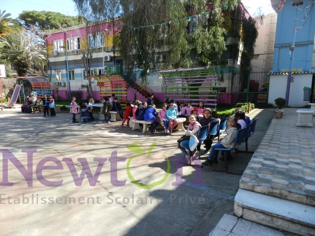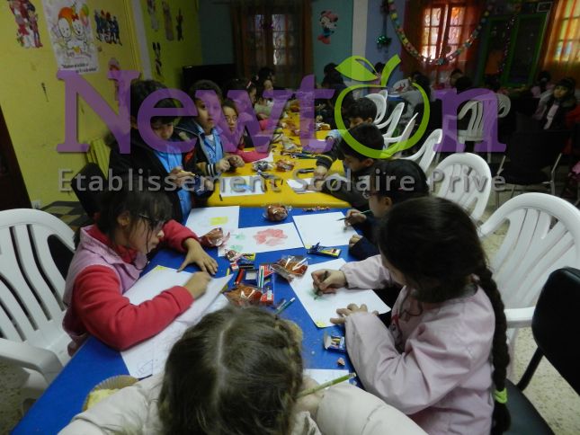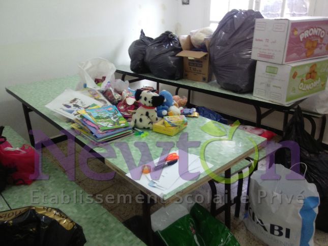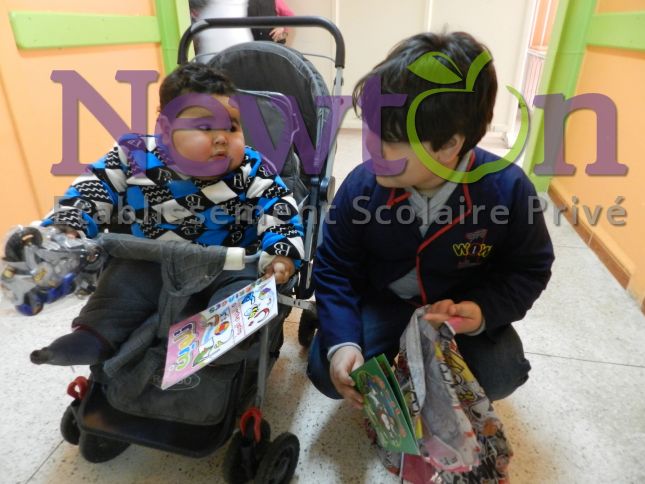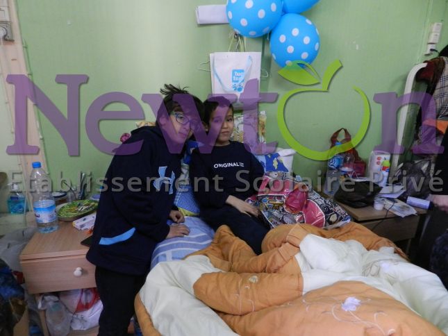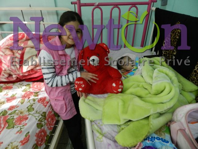 L’établissement scolaire Privé Newton a lancé au courant de l’année 2016 une compagne de sensibilisation à la solidarité et à l’action humanitaire avec une collecte de dons (aliments/ jouets/vêtements) et une visite aux enfants malades du service pédiatrie du CHU Lamine Debaghine (ex. Maillot) Bab el Oued. En marge de la visite, les enfants de l’école et les enfants hospitalisés ont participé à un atelier d’échange de dessin réalisé sur place en partenariat avec l’association Nour.